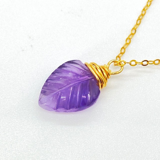 葉っぱのカービングが可愛いアメジスト ネックレス