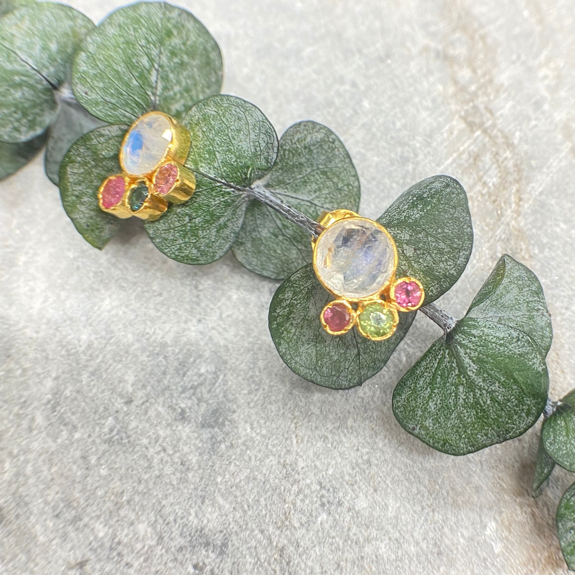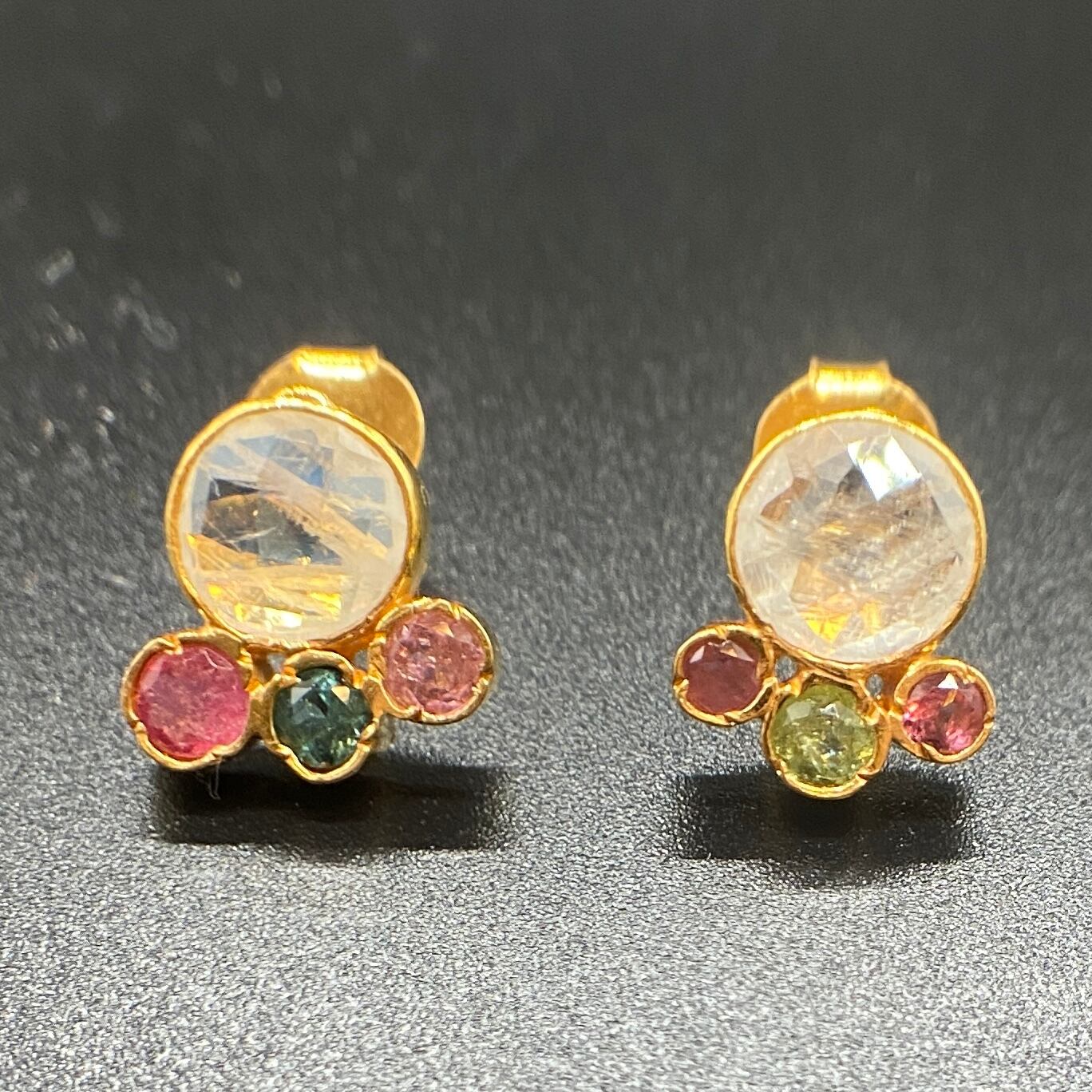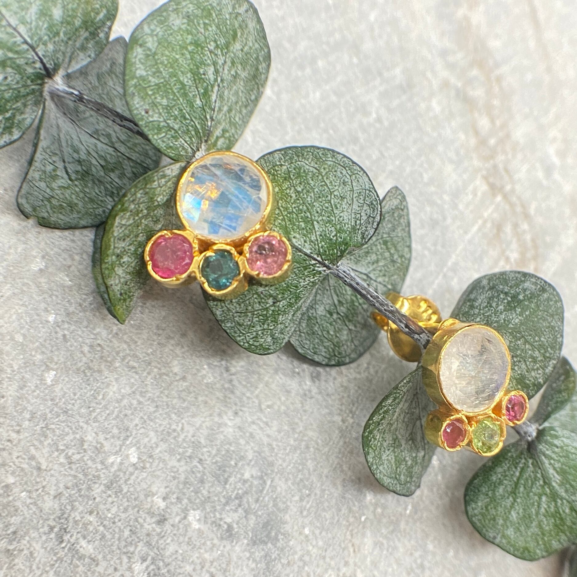 高品質のムーンストーンとカラフルで可愛いトルマリンをセッティングしたピアスです