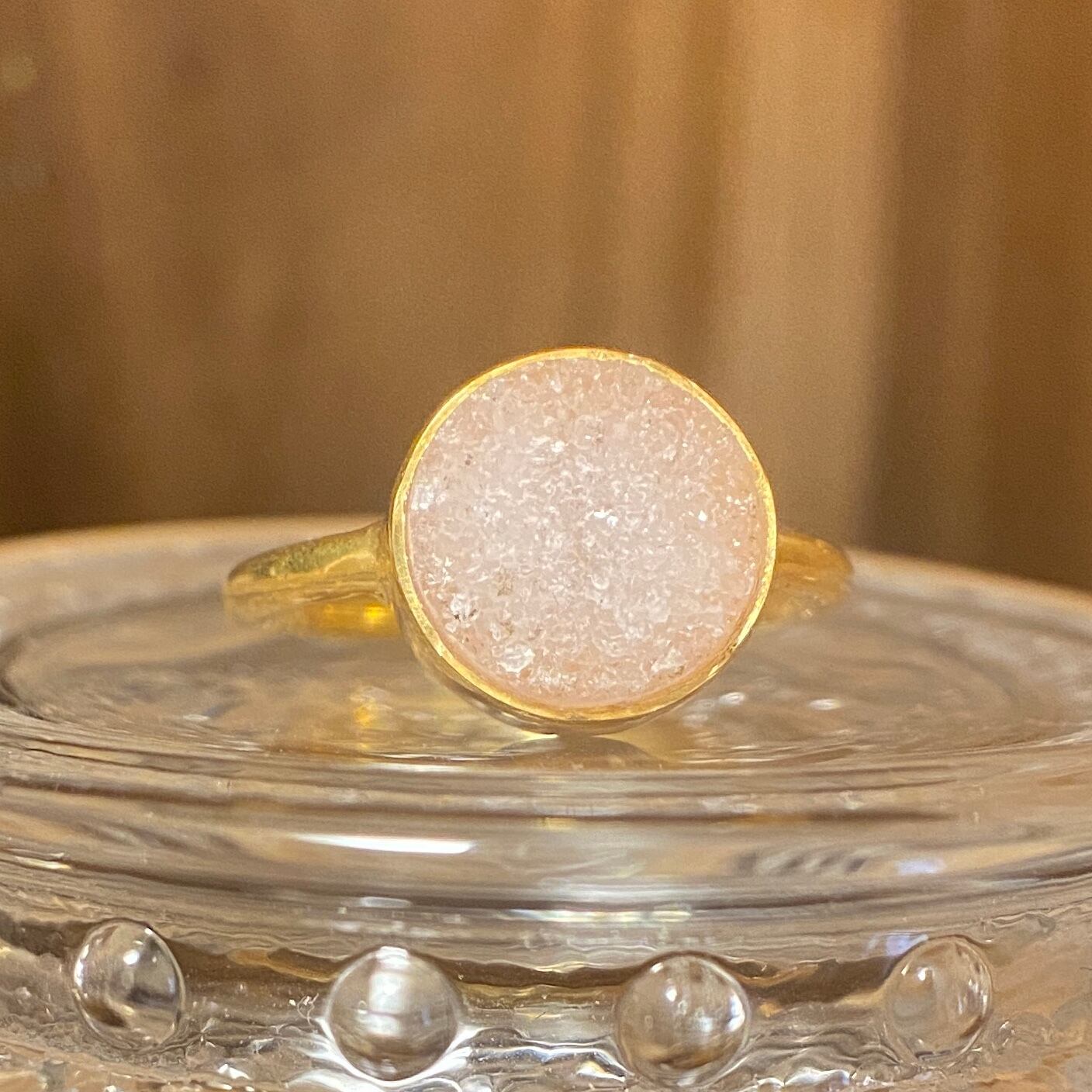 ザックザクのピンクの結晶瑪瑙リング (12.5号)
