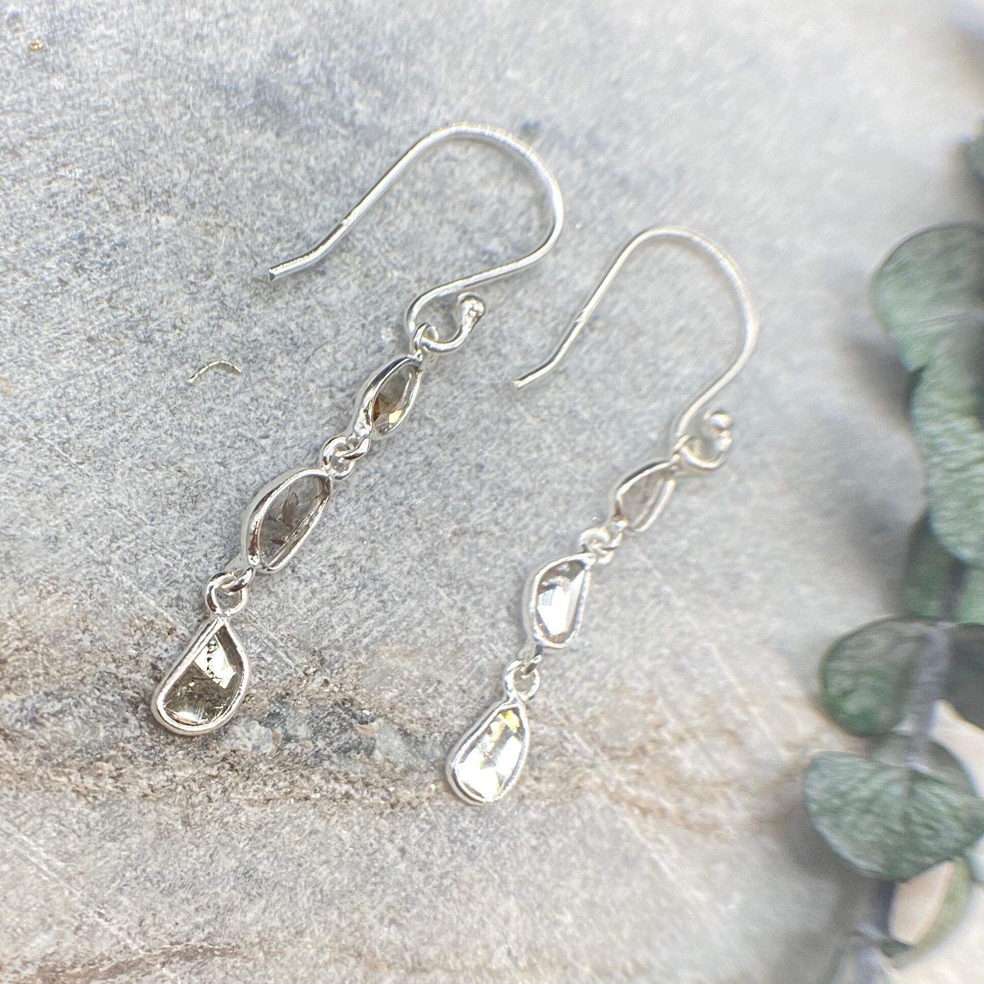 大きく揺れて輝くスライスダイヤモンド(POLKI)ピアス シルバーカラー