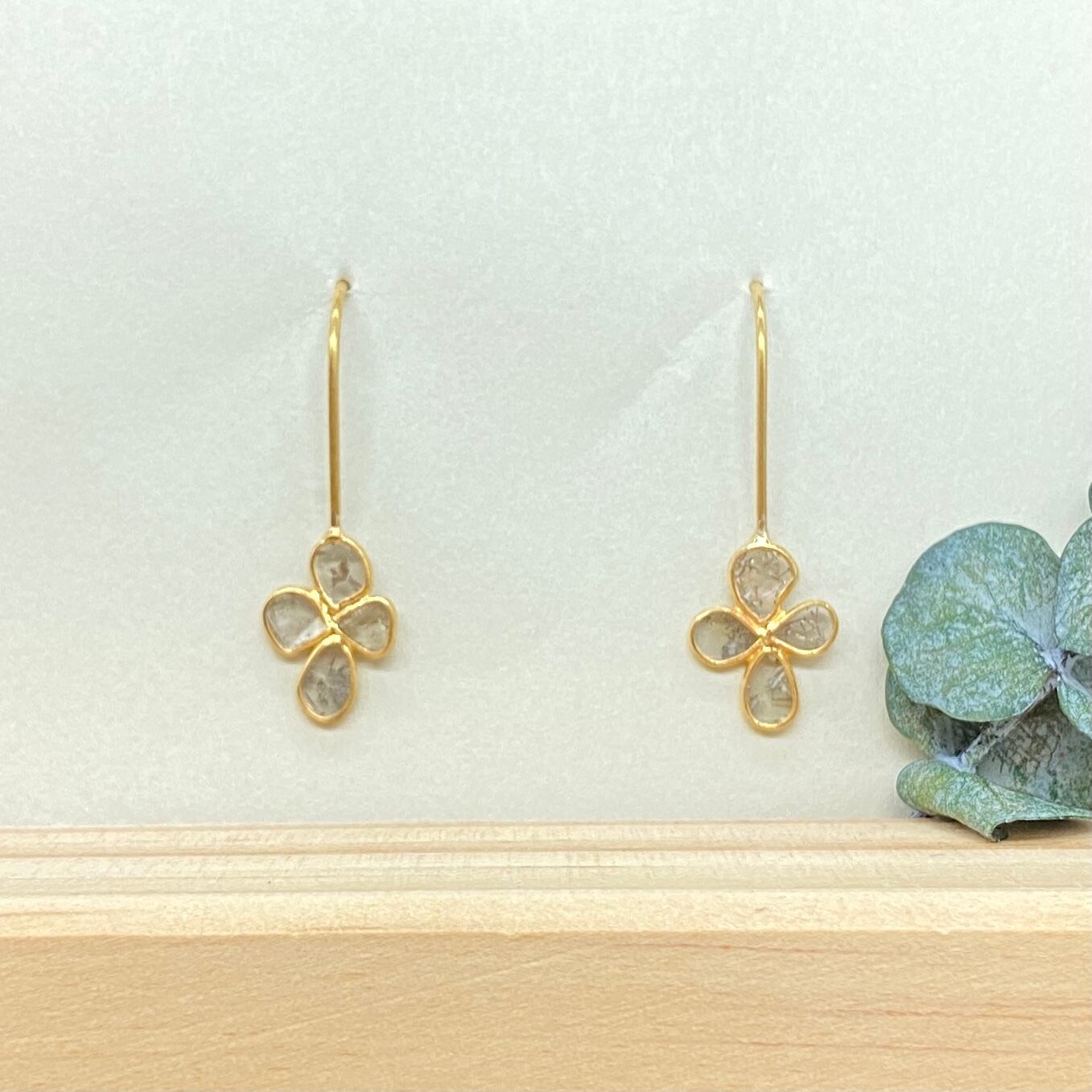 スライスダイヤモンドが4つづつ揺れる四葉のピアスです