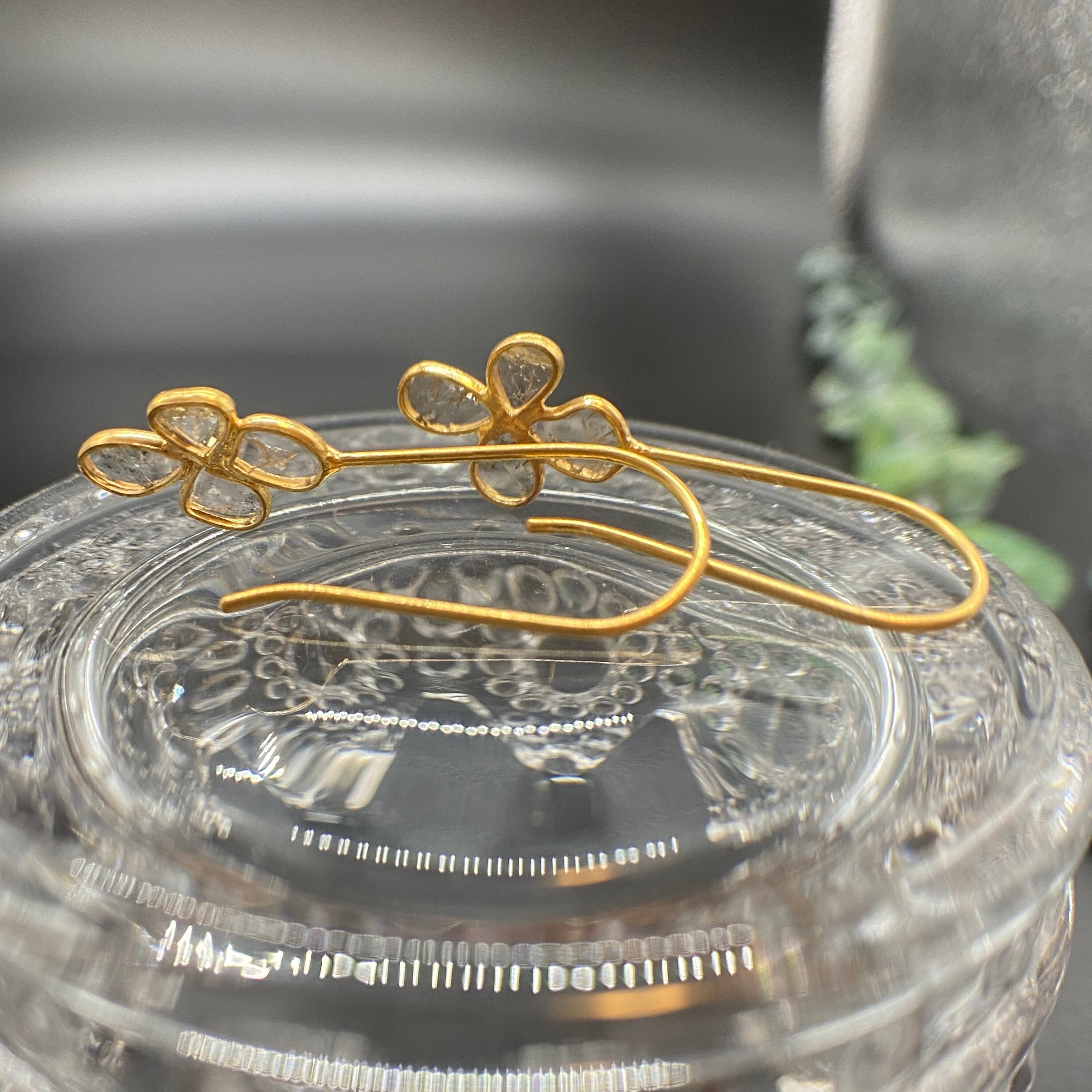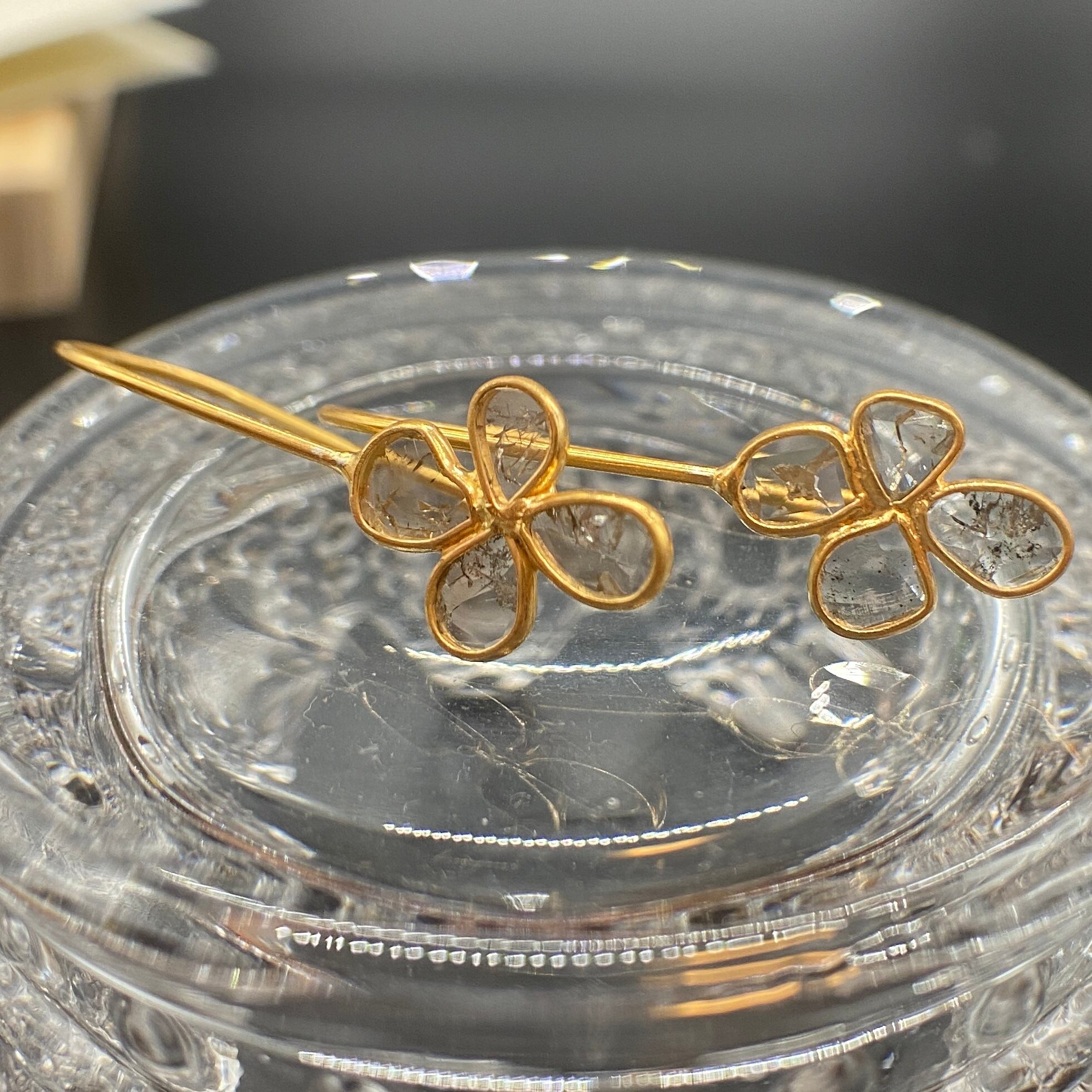 幸せがきそうな四葉のスライスダイヤモンド(POLKI)ピアス ゴールドカラー