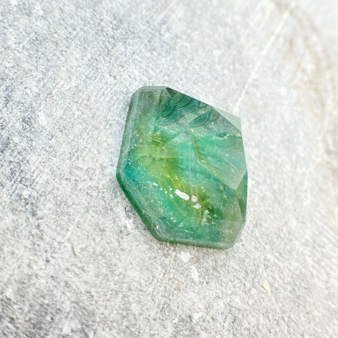 透き通ったグリーンの湖を感じるサンゴメノウを丁寧にカッティングし、