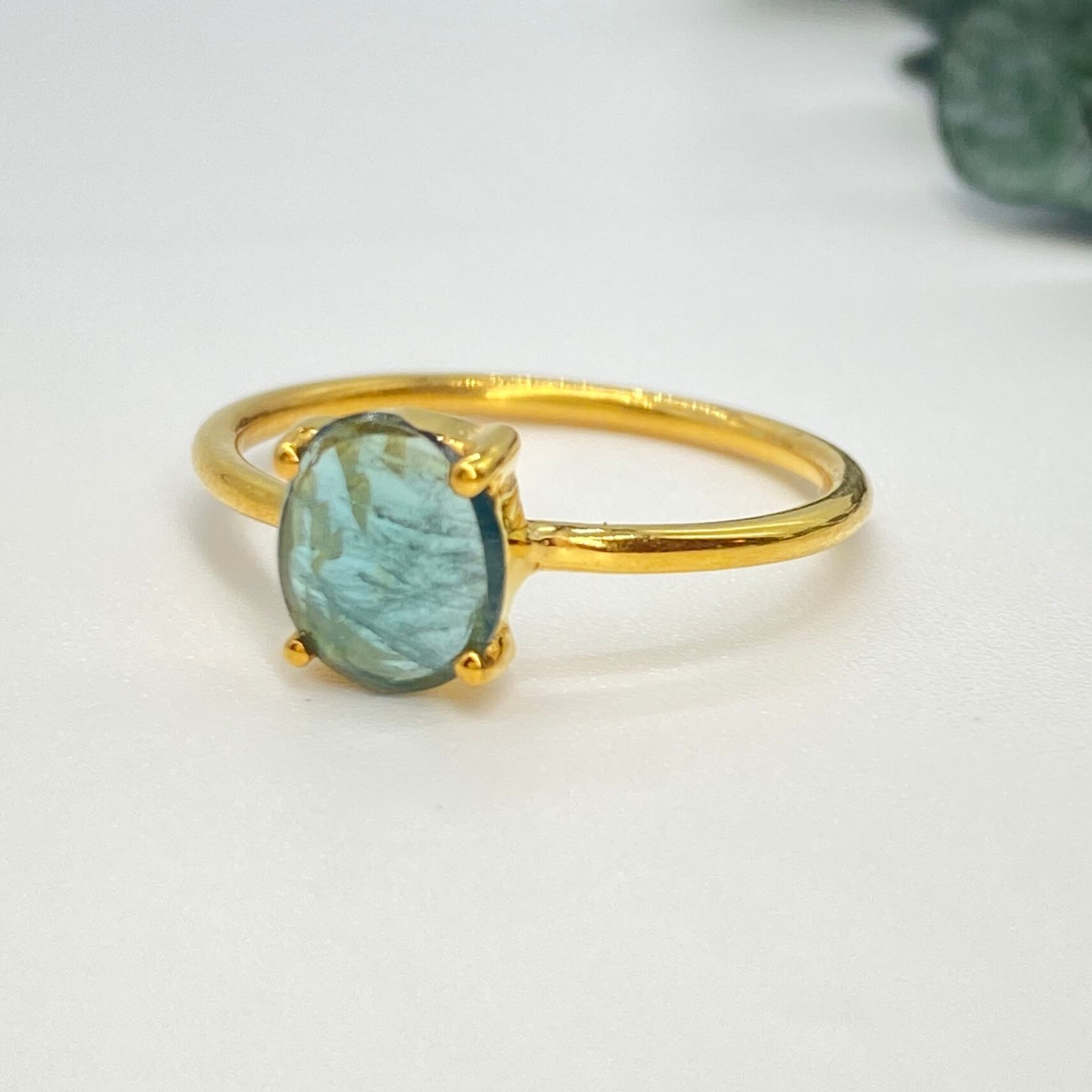 ローズカットのブルートルマリンをセンターにセッティングしました