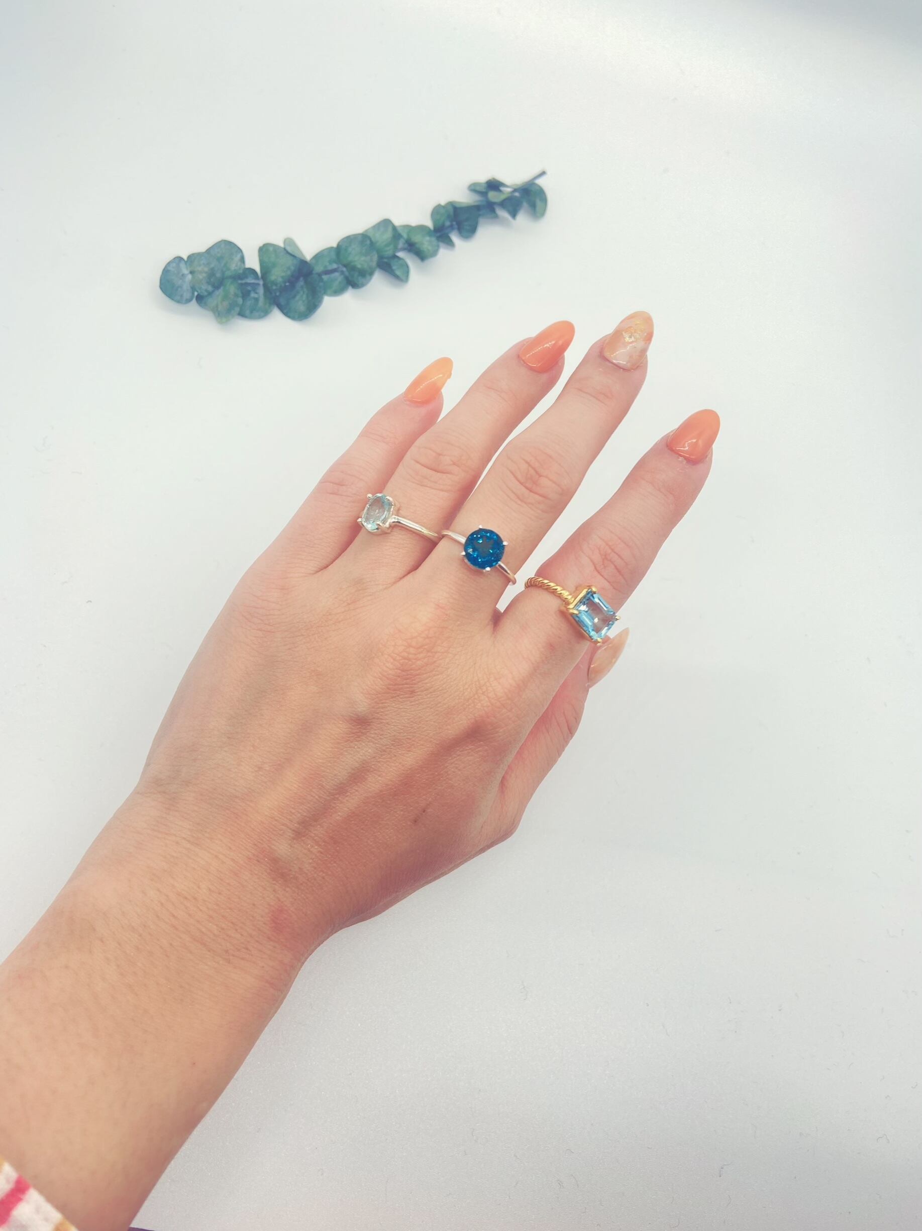 透明感が抜群なスクエアカットのブルートパーズ リング