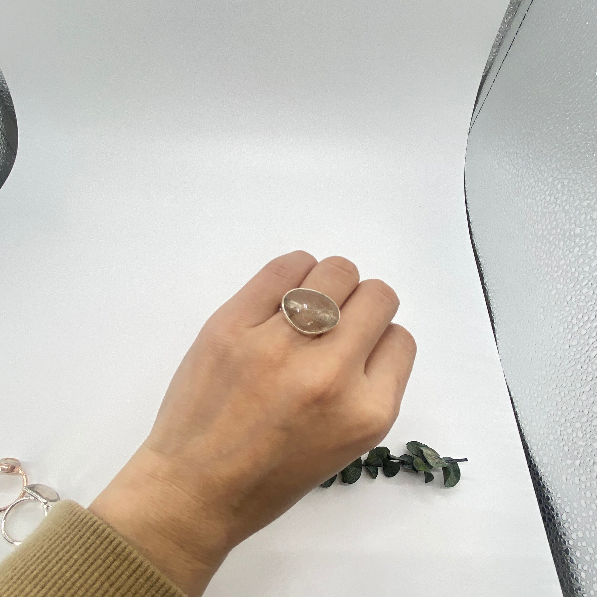 主役級の大きさと輝きのゴールドルチル クォーツリング