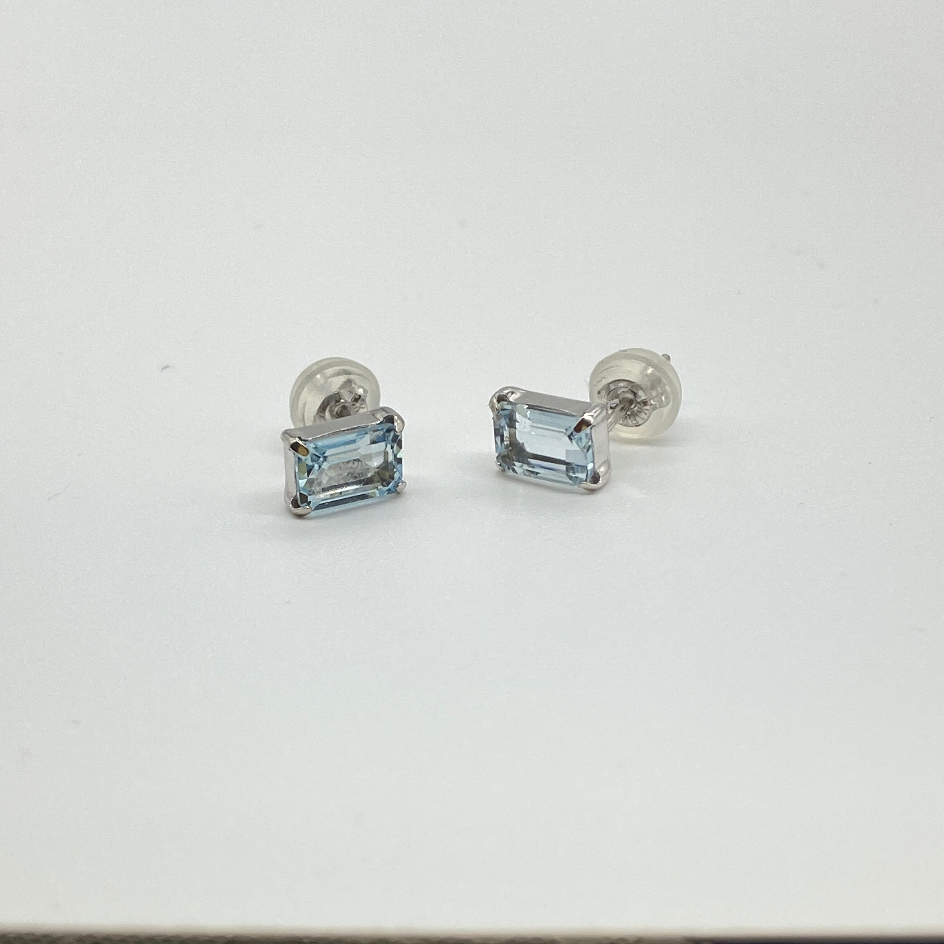 クラシカルな美しさ エメラルドカットのアクアマリンピアス